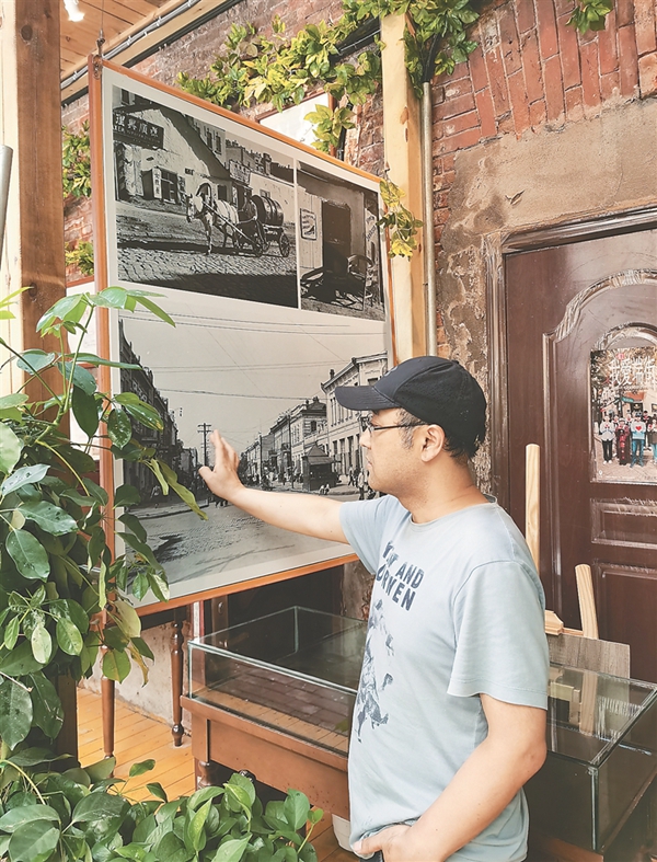 宋興文說,該樓一部分一直閑置,他投資租下該樓一部分進(jìn)行修復(fù),利用十余年來收藏的端街老建筑圖紙、文件、俄僑老家居用品、老照片等,辦起了這家私人公益博物館,2021年8月開始免費(fèi)向游人開放,介紹端街歷史文化,實(shí)現(xiàn)“哈爾濱老建筑活化”,目前每天能接待游客百余人。