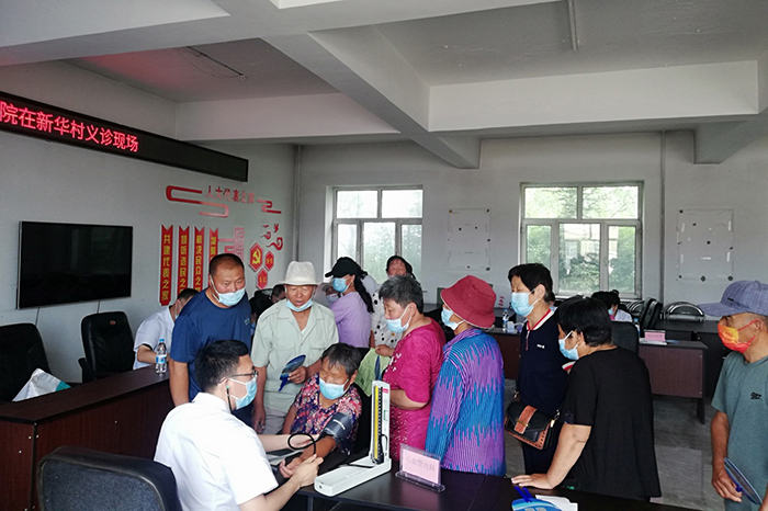 7月16日一大早,村民們就來(lái)到村委辦公樓排起了等候的長(zhǎng)隊(duì),期盼在本村家門(mén)口就能享受到三級(jí)醫(yī)院的專(zhuān)家服務(wù)。上午8時(shí)許,北大荒集團(tuán)北安醫(yī)院兩臺(tái)醫(yī)護(hù)車(chē)開(kāi)進(jìn)了新華村。胸腦泌尿外科、心血管內(nèi)科、普外、中醫(yī)康復(fù)科等7個(gè)科室的20名專(zhuān)家,現(xiàn)場(chǎng)為村民義診把脈、答疑解惑,并免費(fèi)提供彩超、心電、血壓、血糖和常見(jiàn)疾病的診療、咨詢服務(wù),有的醫(yī)患之間還相互留了聯(lián)系方式。當(dāng)天接受專(zhuān)家診治和咨詢的村民達(dá)212人次,醫(yī)技檢查134人次。村民李長(zhǎng)清說(shuō),“過(guò)去鄉(xiāng)親們要到市里醫(yī)院找這些專(zhuān)家看病,又預(yù)約又掛號(hào)排隊(duì)的,可費(fèi)勁了。自打去年義診開(kāi)始,咱村的村民和醫(yī)院專(zhuān)家可以隨時(shí)聯(lián)系隨時(shí)看病,真是太方便我們老百姓了”。