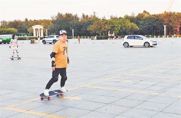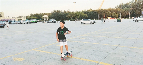 7月21日18時(shí)許,太陽島地鐵站出口附近的小廣場(chǎng),一群人抱著陸沖板陸續(xù)趕到,其中“80后”“90后”居多,還有帶孩子來的“寶媽”。不少人來的時(shí)候穿著上班的職業(yè)裝,換上圓領(lǐng)T恤,戴上鴨舌帽,配齊護(hù)具,簡(jiǎn)單熱身后,迫不及待地開滑。