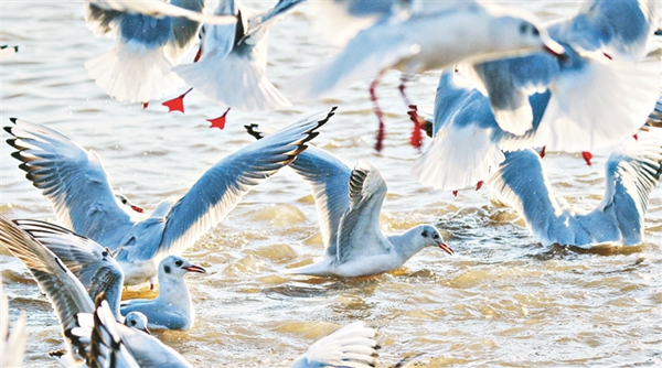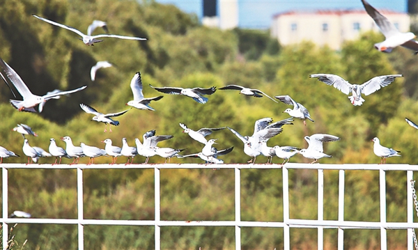 近年來,隨著環(huán)境保護(hù)力度的加大,松花江生態(tài)持續(xù)向好,水豐魚多,給紅嘴鷗等候鳥提供了豐富的食物。每年,都有超過萬只的紅嘴鷗春秋兩季在松花江這處“驛站”歇腳。  黑龍江日報(bào)記者 張澍攝