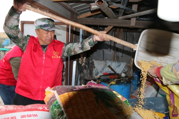 接著大家又來到明桂琴和程少和老人家中。在明桂琴老人家中,黨員同志們一走進(jìn)院子,正趕上老人家中的糧食沒有碼放好灑了一地,大家立刻七手八腳的把糧食收好裝入袋中。在隨后的座談慰問中,老人回想起這些年工作隊的同志們對自己的熱心幫扶,感動得熱淚盈眶。