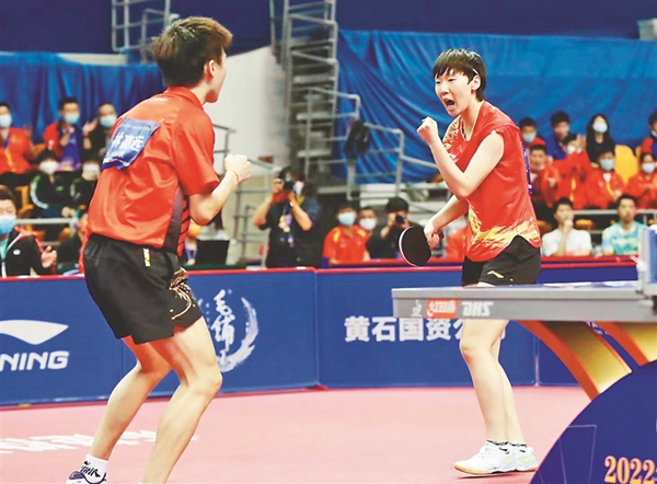 本報訊(記者楊鐳)9日,在湖北黃石舉行的2022全國乒乓球錦標賽進行了混雙決賽的爭奪,黑龍江隊的奧運冠軍王曼昱與廣東名將林高遠搭檔,在決賽中4比2擊敗去年世乒賽該項目冠軍王楚欽/孫穎莎,將金牌收入囊中。