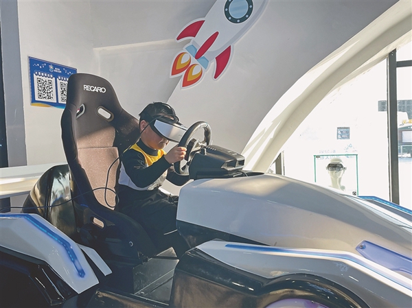 “我還要再體驗(yàn)一次,太好玩了?!苯衲?歲的郭浩宇小朋友用VR眼鏡體驗(yàn)了大滑梯之后,意猶未盡。