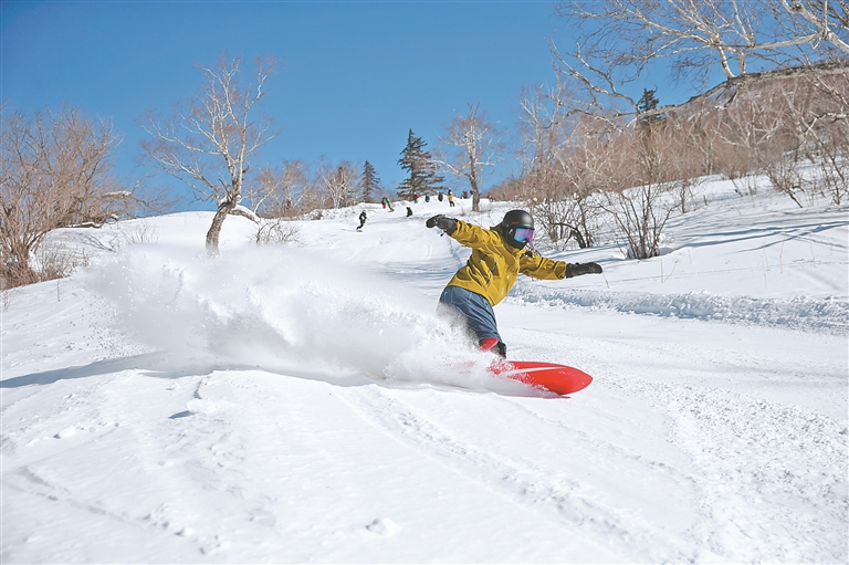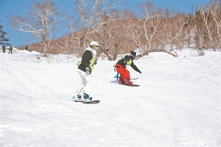 隨著一聲令下,來自哈爾濱的白華、杭州的張寒麒兩名女子單板滑雪選手一躍而起,風(fēng)馳電掣沖向終點(diǎn)。“我非常喜歡雪鄉(xiāng),尤其是有粉雪的時(shí)候特別美,我希望每年能來三次,更希望能夠參加下一次野雪追逐賽?!钡诙蝸淼窖┼l(xiāng)滑雪的杭州女孩張寒麒深深地被雪鄉(xiāng)吸引。