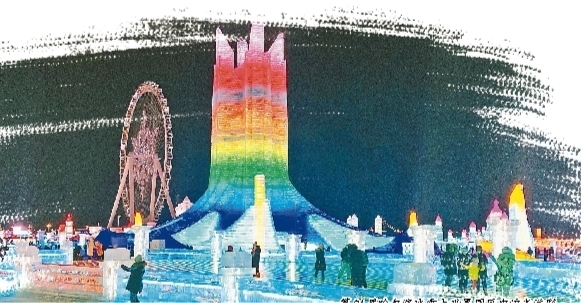 第24屆哈爾濱冰雪大世界園區(qū)內(nèi)流光溢彩。