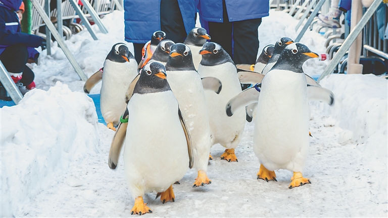 “我們就是專程為‘淘學(xué)企鵝’而來(lái),能在哈爾濱看到全國(guó)僅有的企鵝冰雪巡游,真的不虛此行。”早在1年前,上海游客孟蕓就通過(guò)短視頻看到它們背著小書包打卡黑龍江美景的身影,成為妥妥的“鵝粉”。她說(shuō),為了能在前排近距離觀看,她更是早早就來(lái)到極地廣場(chǎng)等候。哈爾濱極地公園營(yíng)銷部經(jīng)理崔美艷說(shuō),“淘學(xué)企鵝冰雪巡游”自啟動(dòng)以來(lái),每日引萬(wàn)人打卡,成為今冬的爆款網(wǎng)紅活動(dòng),吸引全國(guó)游客來(lái)到哈爾濱看企鵝打卡拍攝,全網(wǎng)曝光量更是在25天的時(shí)間里突破了8.5億。