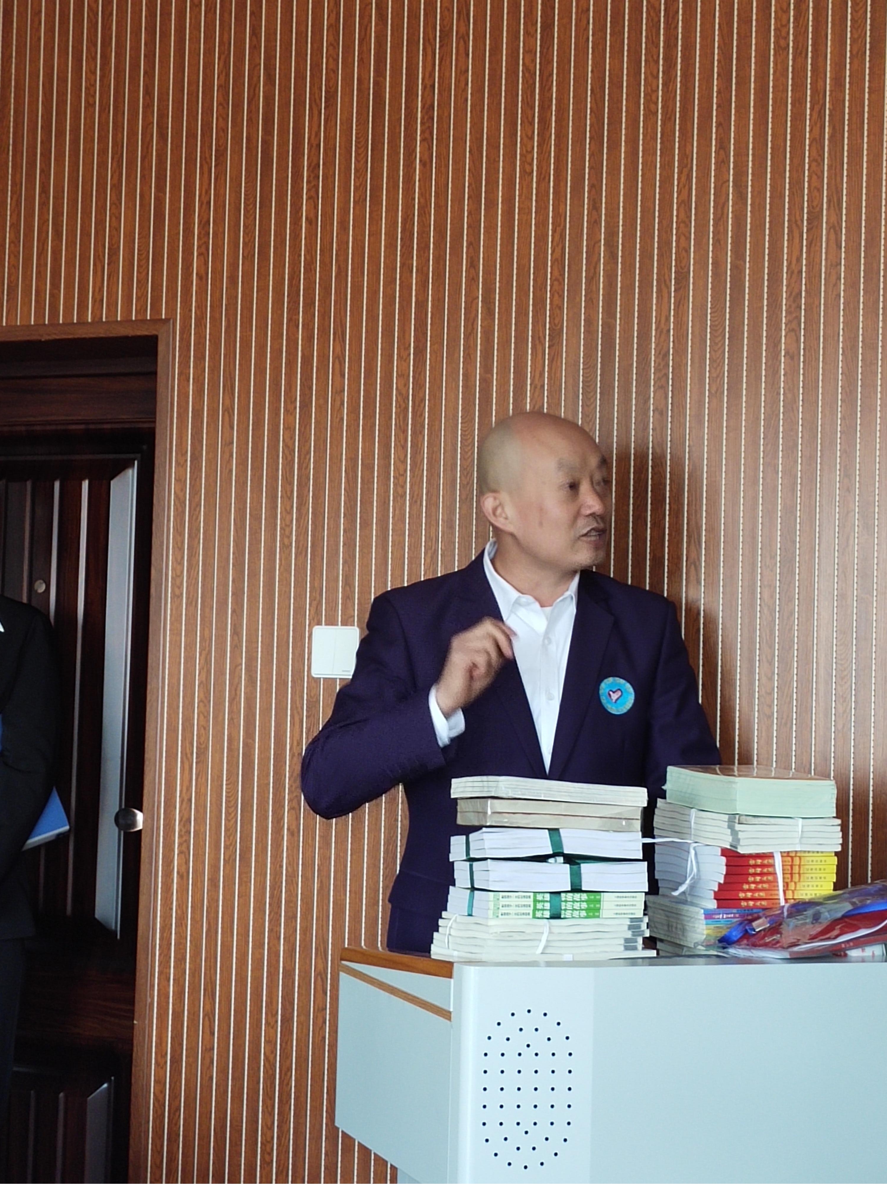 蓮花中心校校長孫洪斌在捐書儀式上做了誠摯的發(fā)言,承諾會(huì)好好利用這些書,給孩子們營造一個(gè)良好的讀書氛圍,讓孩子們真正體會(huì)到讀書的重要性以及讀書所帶來的益處。