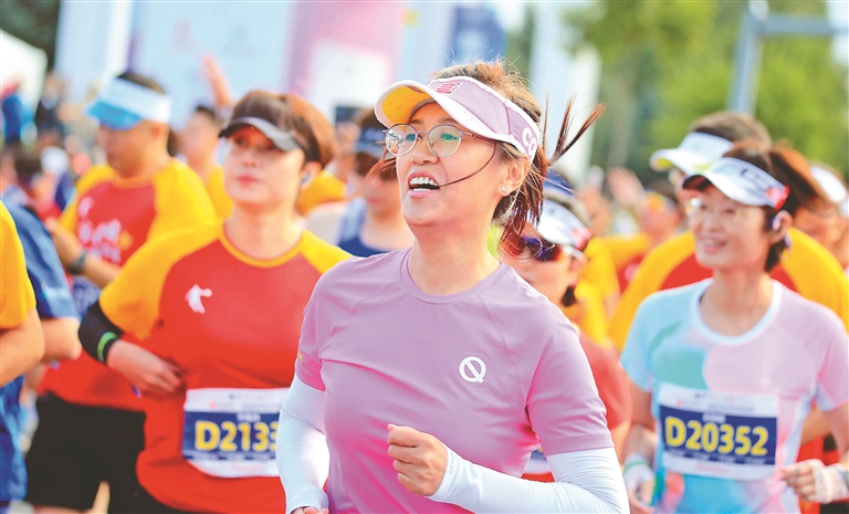 記者看到,參賽的人群滿載著活力與激情,逐漸拉長,不停拓展。賽道上,人潮滾滾向前,一張張笑臉、一聲聲吶喊、一個個難忘的鏡頭,為這場馬拉松定格了最美的印記。