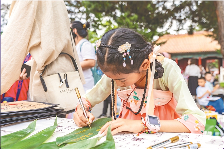 本報10日訊(記者 董云平)對古詩摘“高粽”香囊、體驗古風(fēng)花鈿、沐蘭湯凈手、粽葉寫祝福、解鎖端午限量印章、領(lǐng)取端午彩絲……10日,省民族博物館融合傳統(tǒng)習(xí)俗與現(xiàn)代創(chuàng)意,開啟沉浸式“端午文廟行:粽情畫意 古韻新體驗”,多彩傳統(tǒng)民俗、非遺文化將活動現(xiàn)場節(jié)日氛圍感拉滿,帶給大家端午出游“新”體驗。