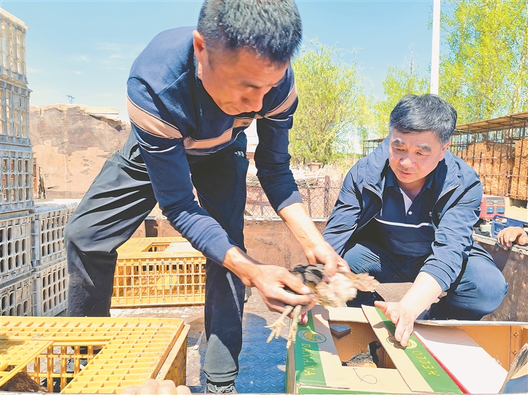 駐村工作隊(duì)將捐贈(zèng)的濱麻雞雞雛送到農(nóng)戶(hù)手中。本報(bào)記者 白云峰攝