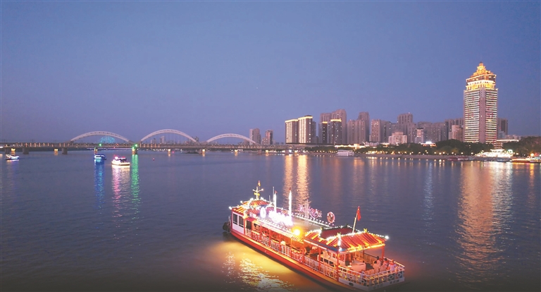 夜晚的松花江上,涼風習習、碧波蕩漾,乘坐游船吹著江風欣賞沿途迷人的風光,成為哈爾濱市民及游客消暑納涼的佳選。1日,哈爾濱市舉辦“濱江夜韻·夜游松花江”主題活動,精心打造的8艘亮化夜游船只,巧妙融合了燈光藝術、音樂、文化表演等元素,為市民和游客奉上獨具特色的夜游體驗。