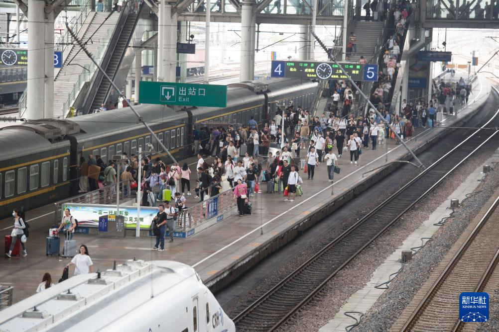 9月30日,旅客在南京火車站站臺乘車。新華社發(fā)(楊素平攝)