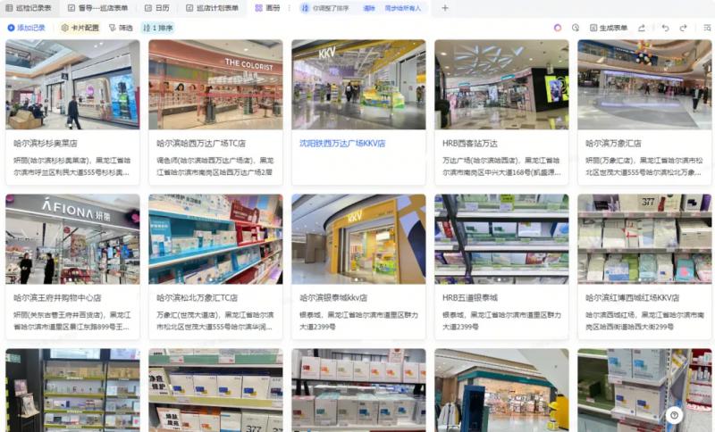 線下巡店工作能最大程度保障各終端貨品銷售質(zhì)量。過(guò)去,由于巡店工作涉及外出出差,巡店照片數(shù)據(jù)手機(jī)端無(wú)法操作整理匯總,影響問(wèn)題處理時(shí)效且增加無(wú)用工作量?,F(xiàn)在敷爾佳運(yùn)用飛書表單移動(dòng)端操作,隨時(shí)上傳巡店結(jié)果及照片,表格儀表盤視角可以查看數(shù)據(jù)并進(jìn)行一段時(shí)間內(nèi)的環(huán)比、同比分析,基于數(shù)據(jù)分析做任務(wù)下達(dá),一次巡檢從發(fā)現(xiàn)問(wèn)題到整改問(wèn)題的全流程都能包攬,對(duì)于每位巡檢員來(lái)說(shuō),每天至少節(jié)省2.5小時(shí)數(shù)據(jù)統(tǒng)計(jì)時(shí)間,同時(shí)更清晰的了解每個(gè)督導(dǎo)的外出工作情況 。此外,查貨溯源沒(méi)有系統(tǒng)的數(shù)據(jù)存檔,多個(gè)渠道數(shù)據(jù)無(wú)法同步,無(wú)數(shù)個(gè)sheet篩選查詢數(shù)據(jù),容易出錯(cuò)?,F(xiàn)在,運(yùn)用多維表格協(xié)同操作,多個(gè)維度查看所需數(shù)據(jù),所有查貨情況能被沉淀和實(shí)時(shí)查看。