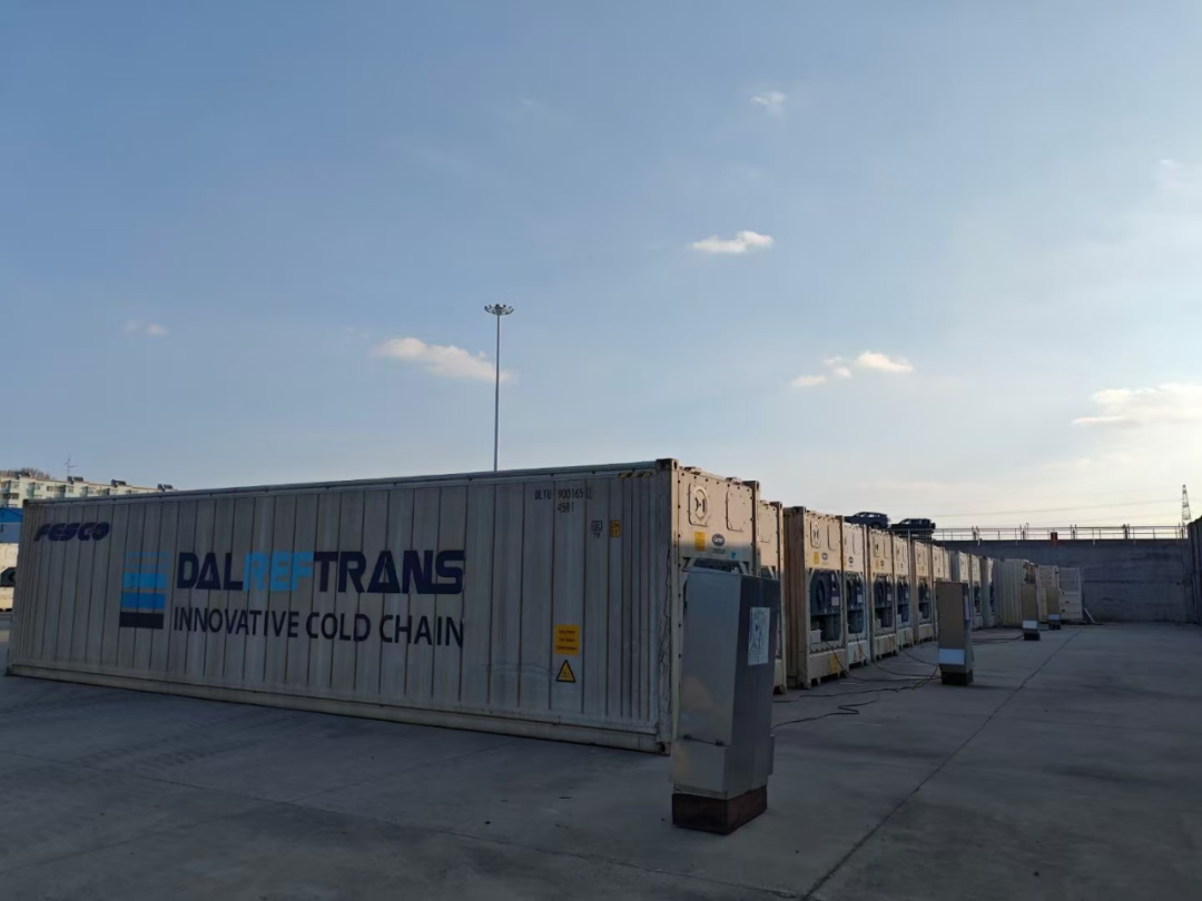 16個裝載進口肉類產(chǎn)品的冷凍集裝箱集結(jié)