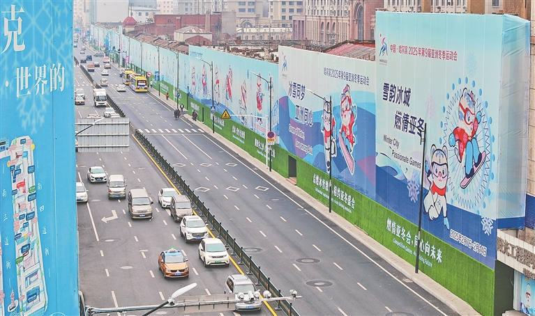 11月14日,哈爾濱市道外區(qū)景陽街上,一幅幅2025年亞冬會內容的噴繪畫亮相,組成生動精彩的亞冬畫廊。