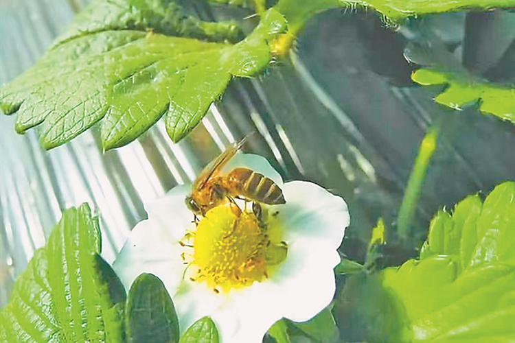 “今年,我種了兩棟草莓,棚內(nèi)還放養(yǎng)了蜜蜂,不但解決了冬季草莓授粉問題,還使草莓上市時(shí)間提前了一個(gè)星期。”寒冬時(shí)節(jié),在雙鴨山農(nóng)場(chǎng)翠博園“果蔬王國(guó)”基地內(nèi),草莓陸續(xù)進(jìn)入開花期??粗蝗盒∶鄯湓诨▍仓行燎趧趧?dòng),種植戶殷濤喜高興地跟記者算起經(jīng)濟(jì)賬:“等元旦前上市,將秒變市場(chǎng)‘團(tuán)寵’,預(yù)計(jì)每畝收入10萬元左右。”2017年以來,雙鴨山農(nóng)場(chǎng)共搭建10余棟日光溫室,打破傳統(tǒng)“春種秋收”的種植觀念,擴(kuò)大棚室果蔬產(chǎn)業(yè),累計(jì)帶動(dòng)職工群眾增收200余萬元。