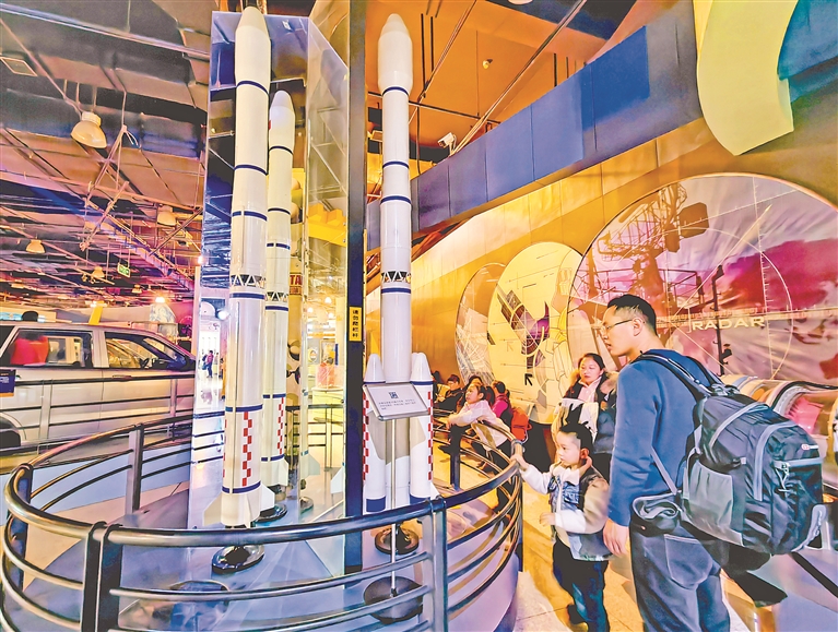 2日,省科技館內(nèi),許多家長(zhǎng)帶著孩子前來(lái)參觀。