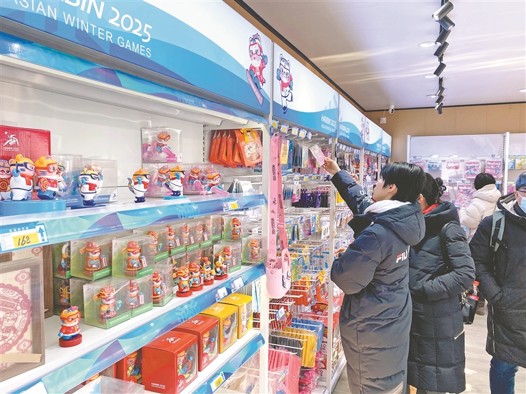 本報訊(記者郭俊峰)亞冬會即將開幕,位于哈爾濱國際會展體育中心亞冬會主媒體中心一層的特許商品零售店內(nèi)人聲鼎沸,亞冬會吉祥物玩偶、冰雪運(yùn)動徽章、琉璃冰壺等300余款特許商品引發(fā)搶購熱潮?;鹁嫦盗邢蘖堪婕o(jì)念品、亞冬會徽章、“濱濱”“妮妮”火炬?zhèn)鬟f紀(jì)念冰箱貼等極具收藏價值的限量版特許商品更是熱銷貨。