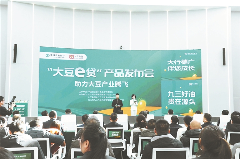 大豆是我國主要的糧油作物,也是食用植物油和植物蛋白質(zhì)的重要來源。助力龍江大豆產(chǎn)業(yè)發(fā)展,促進大豆產(chǎn)能提升,離不開金融的大力支持。日前,中國農(nóng)業(yè)銀行農(nóng)墾分行舉辦“大豆e貸”產(chǎn)品發(fā)布會,該產(chǎn)品可為大豆產(chǎn)業(yè)鏈上的核心企業(yè)、上游供應(yīng)商、下游經(jīng)銷商以及廣大訂單種植戶提供全鏈條的融資服務(wù),為打通大豆供應(yīng)鏈資金渠道提供更優(yōu)融資選項,為全省大豆產(chǎn)業(yè)發(fā)展注入金融“活水”。