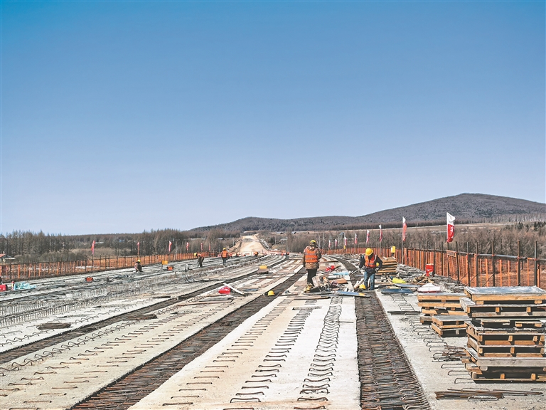 日前,在G1111鶴哈高速苔青至伊春段梅花河大橋的施工現(xiàn)場,數(shù)十名工人正熱火朝天地進行橋梁的鋼構件加工和安裝工作。鶴哈高速苔伊項目3月16日正式復工復產,為完善龍江高速公路網(wǎng)絡按下“加速鍵”。