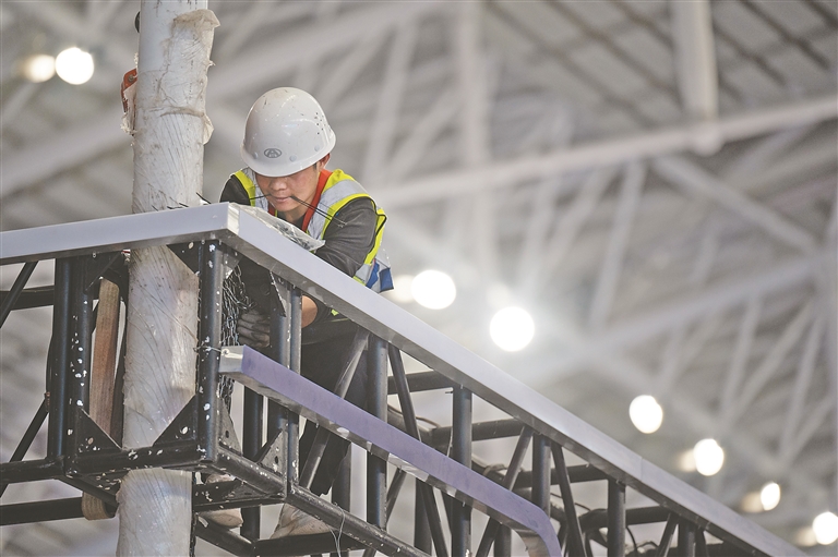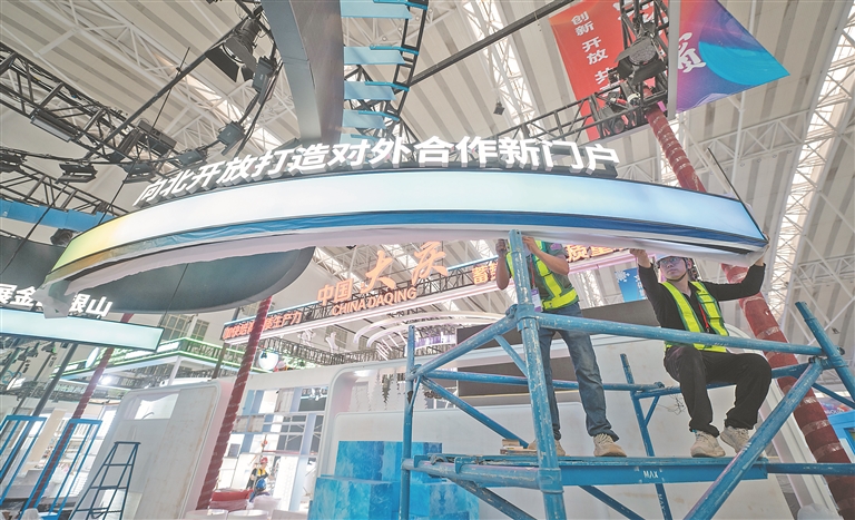 5月14日,距離哈洽會(huì)開幕還有三天時(shí)間,記者來到第34屆哈洽會(huì)展館施工現(xiàn)場(chǎng),各區(qū)域展臺(tái)已搭建成型,施工工人們正在有條不紊地裝飾展區(qū)細(xì)節(jié)部分。