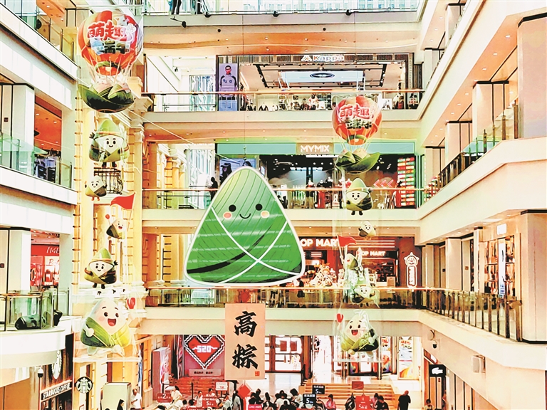 為迎接端午節(jié)的到來,各商場在引進充足貨源的同時,也都裝飾一新,節(jié)日氣氛濃厚。