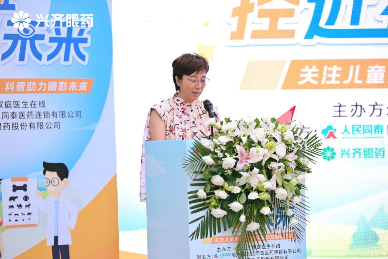 哈爾濱人民同泰醫(yī)藥連鎖有限公司副總經(jīng)理柴靜榮在致辭中直面近視低齡化、重度化挑戰(zhàn),強調企業(yè)踐行“打造卓越品牌、致力大眾健康”使命的責任擔當。依托全省350余家社區(qū)門店網(wǎng)絡及線上線下一體化平臺,全力支持公益視力檢測、科普講座等行動,并發(fā)揮執(zhí)業(yè)藥師團隊專業(yè)力量,使科學近視防控理念精準觸達家庭場景。