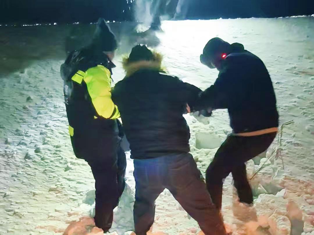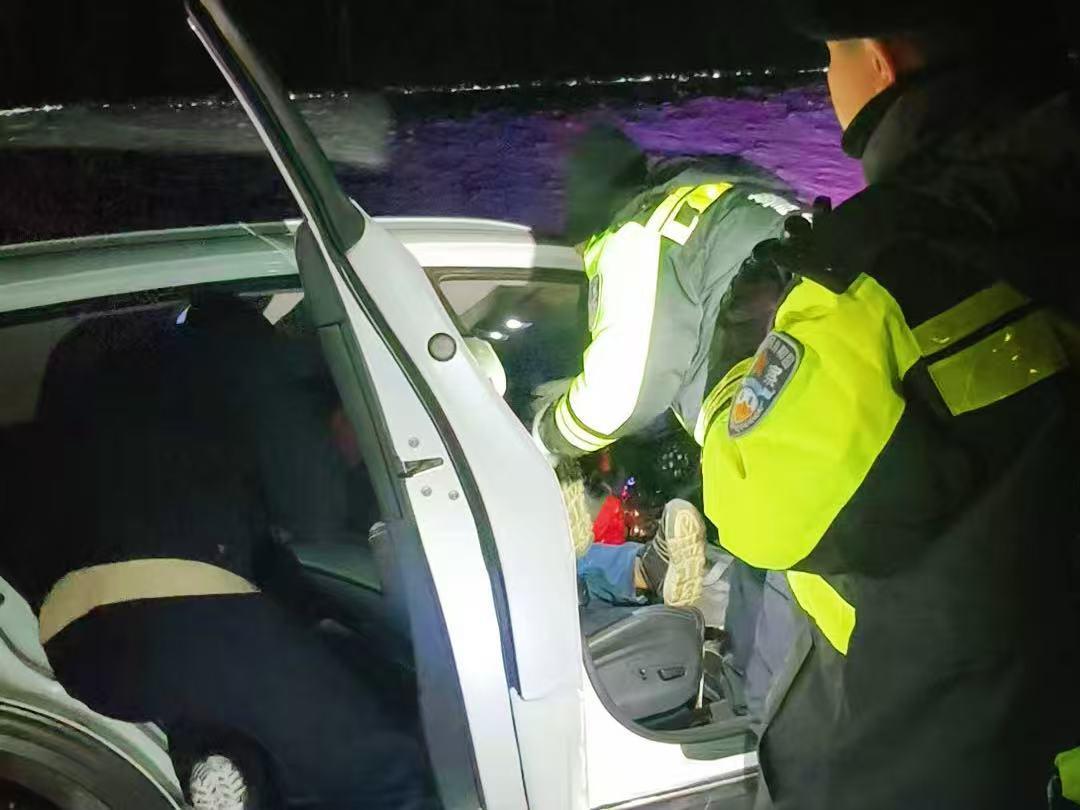 抵達(dá)現(xiàn)場后,民輔警第一時間查看被困人員狀態(tài),通過簡單詢問,確認(rèn)無人員受傷,隨即立刻展開低溫救援,由于溝坡陡滑,常規(guī)救援設(shè)備無法使用。民輔警毫不猶豫地滑下溝底,并迅速從副駕駛展開救援,經(jīng)過不懈努力,十分鐘后成功將被困人員從車內(nèi)救出。隨后,民輔警主動幫助聯(lián)系拖車公司將車輛送至維修廠檢修,并用警車將游客接回派出所安置。抵達(dá)白銀納派出所后,值班輔警遞出早已準(zhǔn)備好的熱水和蛋糕?!皽囟冗_(dá)到零下36℃,手機(jī)凍得即將關(guān)機(jī),還好有人民警察幫忙,不然真的不知道該怎么辦了。”被救助群眾感激的說道。