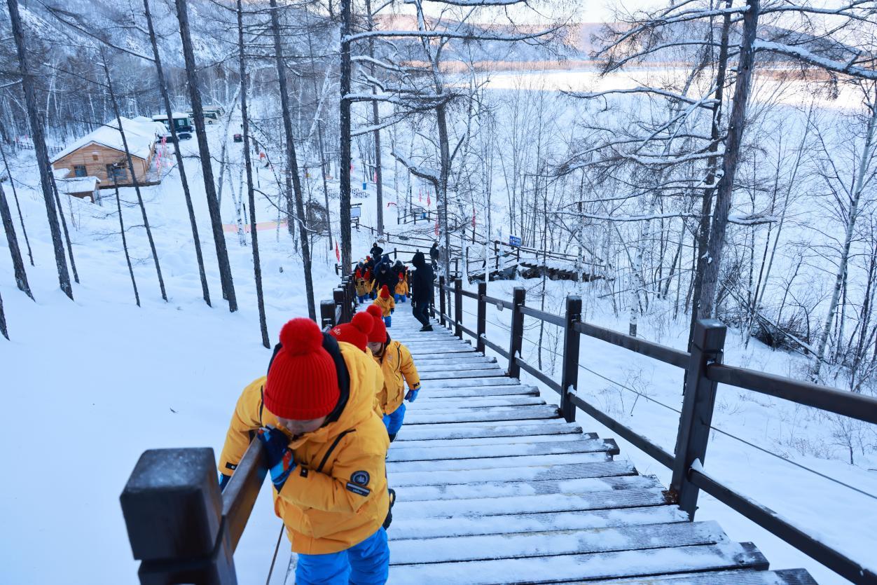 景區(qū)工作人員早早做好了充分準備,不僅為孩子們貼心講解龍江第一灣的地理風貌和歷史故事,還準備了熱乎乎的飯菜?!斑@群孩子太可愛了,看到他們對大興安嶺的冰雪這么感興趣,我們也特別開心?!本皡^(qū)負責人安石春笑著說,“希望通過這次旅程,能讓南方的小朋友們愛上北國的冬天,愛上圖強的冰雪風光。”