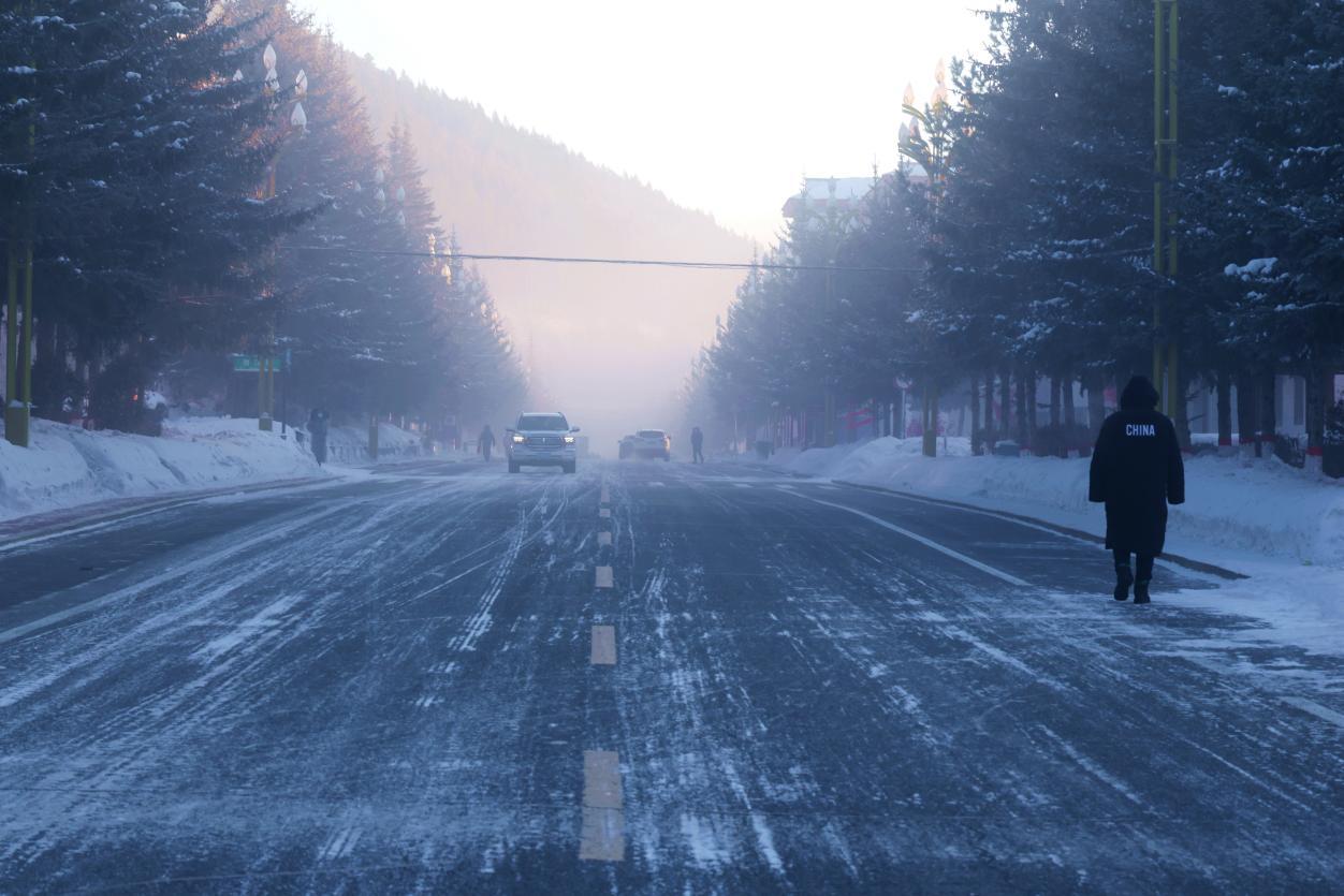 當(dāng)?shù)厝怂追Q的“冒白煙”,由于空氣中水汽遇超低溫直接凝華成冰晶,層層白霧如薄紗漫過(guò)群山、覆上民居,遠(yuǎn)處山巒若隱若現(xiàn),近處屋舍錯(cuò)落有致,宛若天上街市落人間,8時(shí)許冰霧濃度達(dá)峰值,街頭能見度顯著下降。