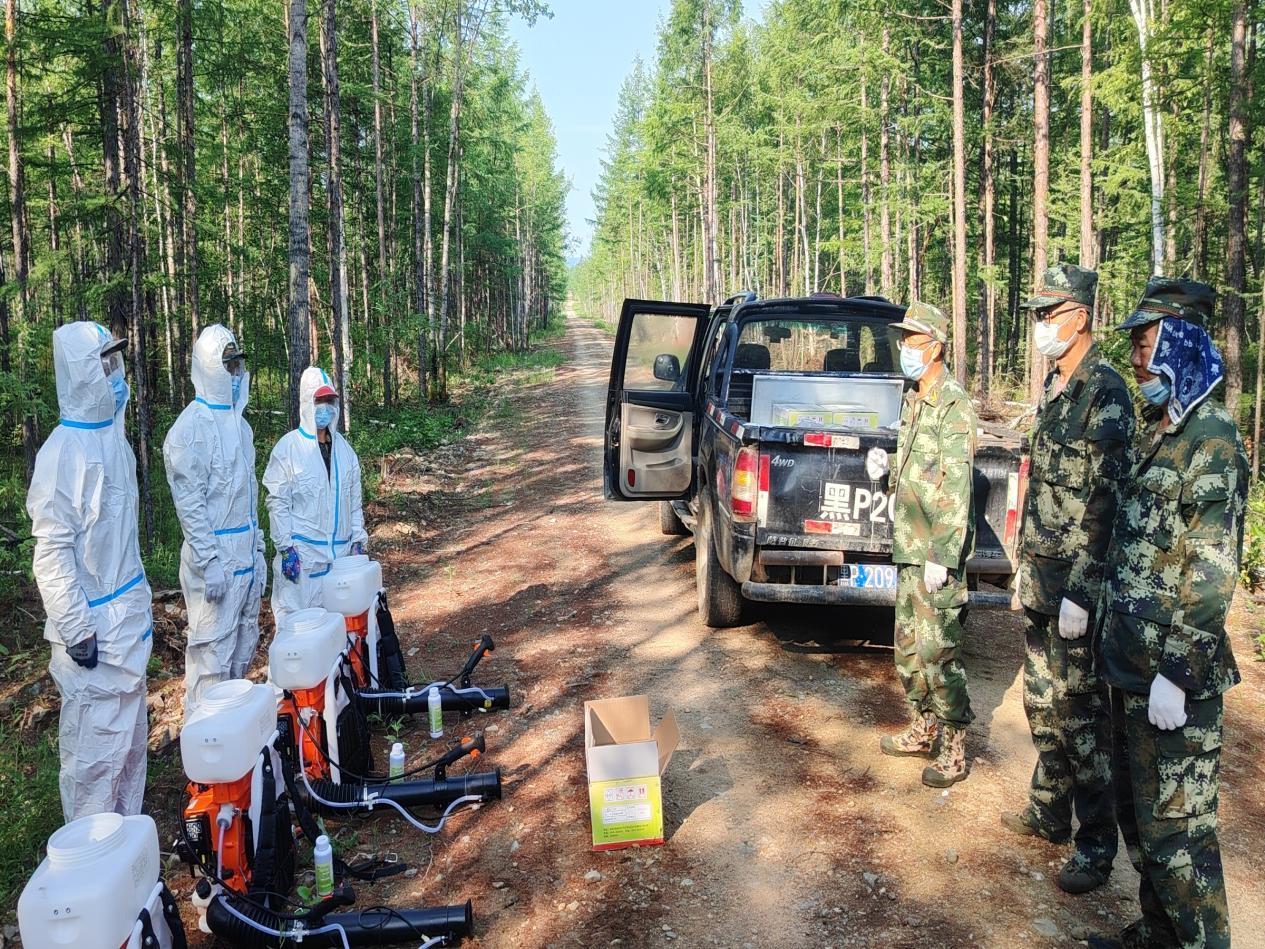 新林林業(yè)局專業(yè)技術(shù)人員在開(kāi)展病蟲(chóng)害防治工作(張瑩 攝)