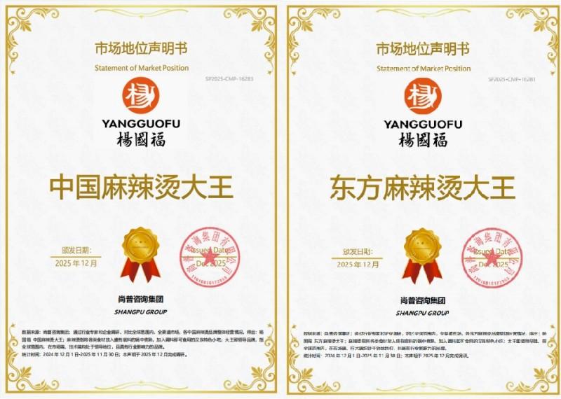 近日,楊國福集團憑借在麻辣燙賽道的深耕積淀與多維創(chuàng)新,斬獲多項行業(yè)權(quán)威認證?!爸袊槔睜C大王”的龍頭底蘊、“東方麻辣燙大王”的文化認可,“草本骨湯麻辣燙開創(chuàng)者”的產(chǎn)品匠心,加之“全球首個麻辣燙智能制造工廠”的技術(shù)突破,四重優(yōu)勢疊加構(gòu)筑起楊國福麻辣燙的核心競爭力,為餐飲行業(yè)標準化、健康化、智能化轉(zhuǎn)型提供了可借鑒的實踐范本。