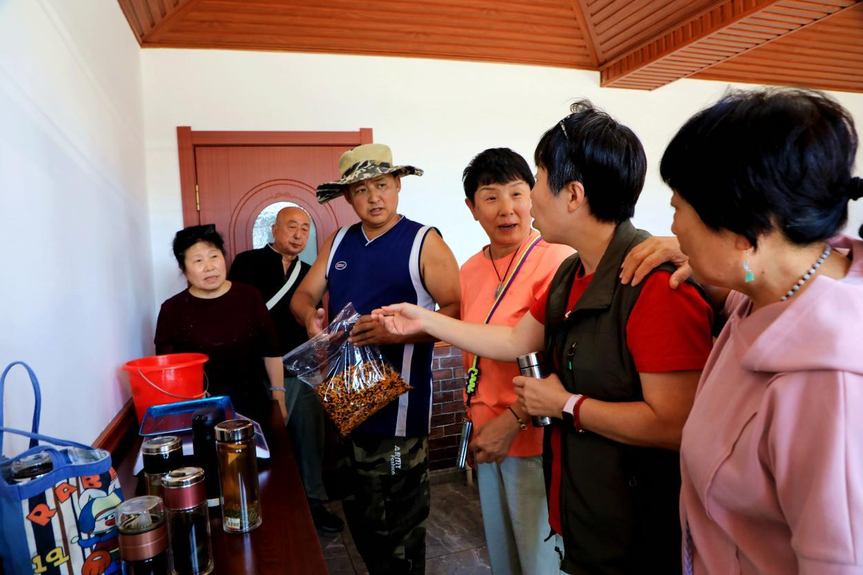 龍河林場職工向游客銷售林下產(chǎn)品(王力 攝)