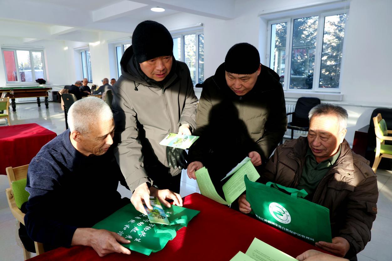 阿木爾林業(yè)局聯(lián)合宣傳小組成員向居民普及濕地保護(hù)知識(shí),提升居民保護(hù)濕地意識(shí)(王力 攝)