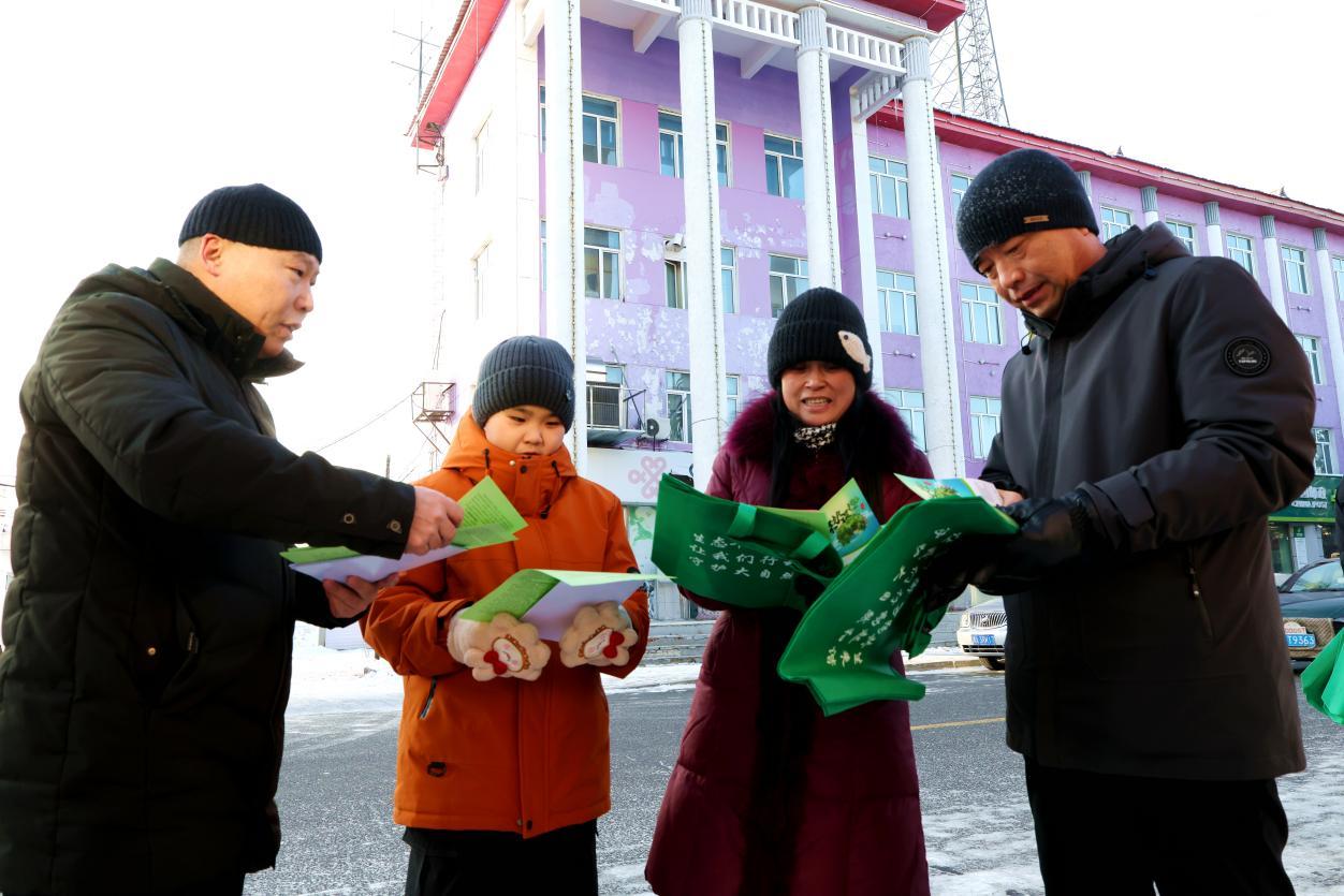 阿木爾林業(yè)局聯(lián)合宣傳小組在人員密集場(chǎng)所,拉起條幅營(yíng)造濃厚的濕地保護(hù)氛圍(王力 攝)