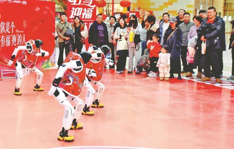 19日,正月初三。哈爾濱市道里區(qū)一家大型商場舉行了機(jī)器人舞蹈表演,吸引許多市民游客駐足觀看。走進(jìn)場地的三個機(jī)器人身高1.5米左右,穿著紅色棉坎肩,十分喜慶。在音樂伴奏下,它們翩翩起舞,動作整齊劃一。表演結(jié)束后,機(jī)器人走進(jìn)人群,與大家握手、合影、互動。春節(jié)假期,哈爾濱市多家商場都推出了機(jī)器人表演,讓市民游客與最新科技來個親密接觸。