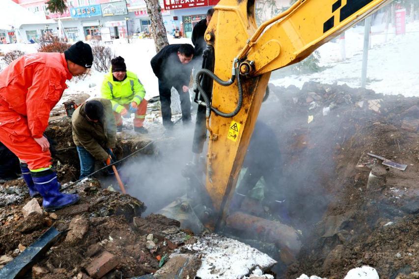 此次搶修時間緊、任務(wù)重,若未能及時處置,不僅可能導(dǎo)致支線管網(wǎng)凍裂,更會影響2號換熱站覆蓋的樓房、商服及居民用戶的正常供暖。面對突發(fā)險情,林業(yè)局迅速啟動供暖應(yīng)急搶修預(yù)案,相關(guān)人員第一時間趕赴現(xiàn)場,反復(fù)研究制定最優(yōu)搶修方案。
