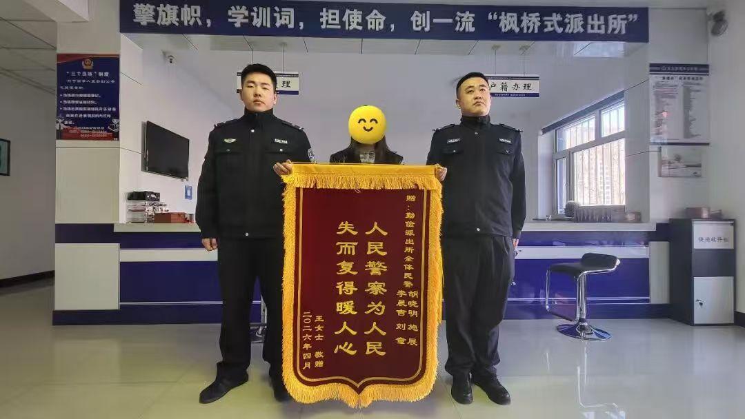 民警隨后將手機(jī)當(dāng)面交還給失主,失主看到失而復(fù)得的手機(jī),且內(nèi)部文件完好無損,激動(dòng)地向民警連連道謝。為感謝民警高效處置、為民解憂,失主特意制作錦旗,專程送到勤儉派出所,表達(dá)對(duì)民警的感激之情。